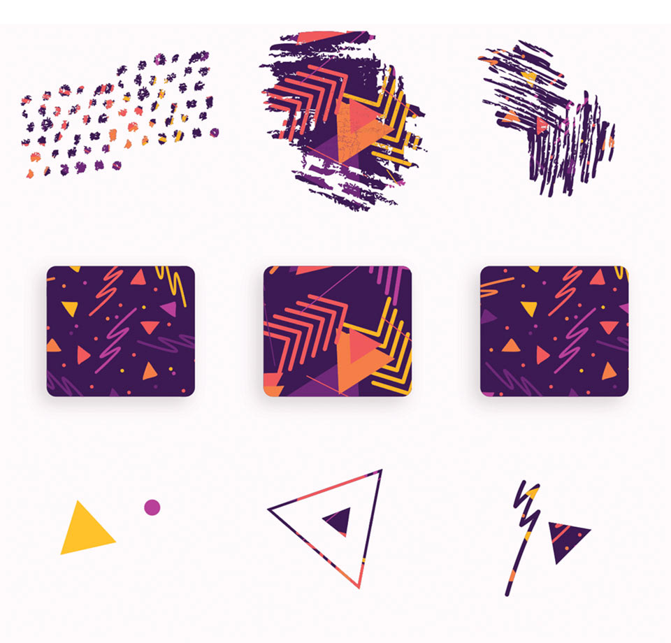 I started by studying Sentry’s branding. Behind colorful characters and a Glyph that runs around with gadgets and laptops, Sentry uses colors and patterns to infuse play and creativity into the never ending hunt for bugs. Looking through the brand guidelines I found patterns by the brilliant Steven Lewis. These patterns could be even more playful, if they just moved around a bit. So they became the foundation of our graphics package.